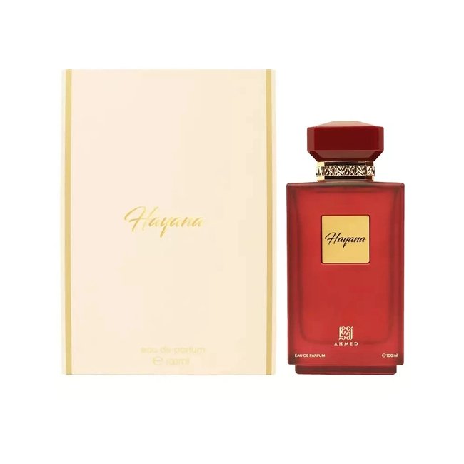 Experience the exotic allure of Hayana Eau de Parfum by Ahmed. This luxurious fragrance is crafted to evoke sensual elegance and timeless sophistication. The deep red bottle, adorned with a gold label and intricate cap, houses an intense, long-lasting scent perfect for evening wear or special occasions. Presented in an elegant cream-gold box, Hayana makes a refined gift choice or a personal indulgence for the discerning connoisseur.