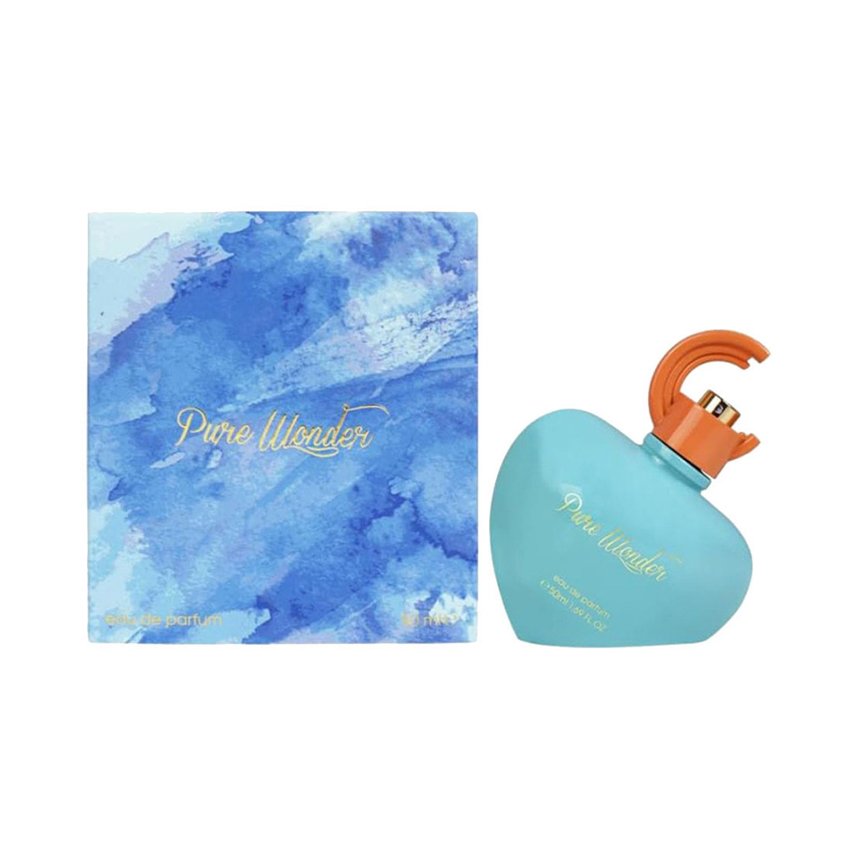 ure Wonder is a fresh, feminine fragrance housed in an eye‑catching heart‑shaped bottle with a vibrant orange spray nozzle. The eau de parfum captures a sense of youthful curiosity and playful elegance, making it perfect for everyday wear or special occasions. The blue watercolor packaging adds an artistic touch that reflects the scent’s fluid, luminous character.