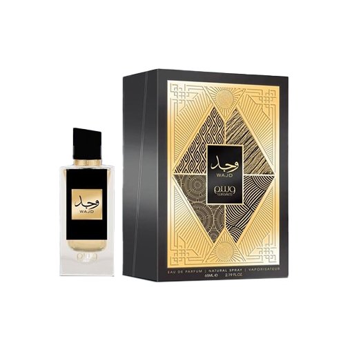 - Packaging: Comes in a stylish black box with gold geometric design and Arabic & English labeling (“Wajid”).
