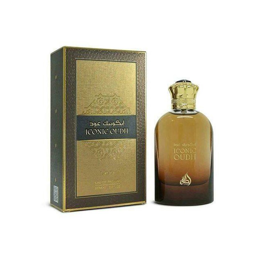 Iconic Oudh is a luxurious, oriental fragrance that captures the essence of rich, exotic oud blended with refined elegance. Presented in an elegant golden-crowned bottle with a sophisticated amber gradient, this perfume delivers a deep, lingering scent perfect for evening wear or special occasions. The packaging features a premium black-and-gold box with intricate embossing, adding a regal touch to the experience.