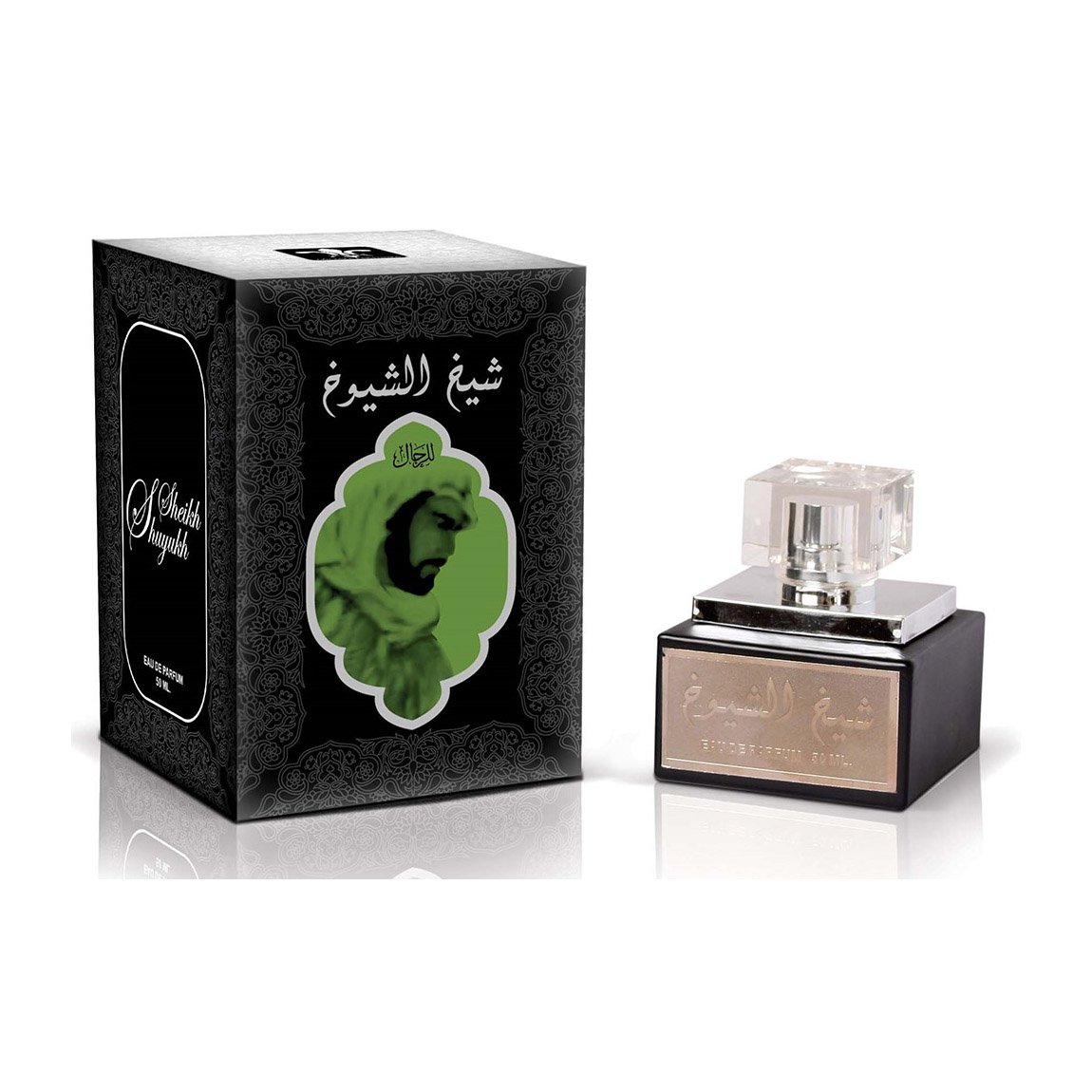 - Packaging: Black box with silver‑etched Arabic script “شيخ الشيوخ” and a metallic label on the bottle highlighting the name and concentration.